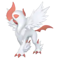 Mega Absol emits a fearsome aura that has been known to kill fainthearted people from shock. It directs this aura at its opponents by beating its "wings", which are not capable of flight. However, Absol apparently detests assuming this form, as it normally dislikes fighting in the first place.