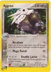 Aggron (Japanese: ボスゴドラ Bossgodora) is a Metal-type Stage 2 Pokémon card. It is part of the EX Ruby & Sapphire expansion.