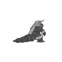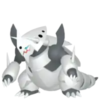 The gouges in Aggron's armor from previous battles are worn as mementos. The more wounds it has, the more it has battled. It claims a large mountain as its territory and fiercely defends it from trespassers. If its environment is damaged by a flood or a forest fire, it will restore the area by bringing in topsoil and planting trees. It burrows through the strongest of bedrock and digs tunnels, as it searches for iron to eat. Its horns, which it uses to dig through bedrock when seeking food, grow a little longer at a time and can be used to determine its age. Aggron's horn is sharp enough to cut through steel and used as a ramming weapon to bring foes down. Long ago, there was a king who wore a helmet resembling an Aggron in an attempt to channel its strength.