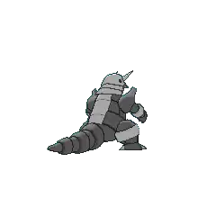 Aggron (Japanese: ボスゴドラ Bossgodora) is a dual-type Steel/Rock Pokémon introduced in Generation III.