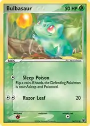 Bulbasaur (Japanese: フシギダネ Fushigidane) is a Grass-type Basic Pokémon card. It is part of the EX FireRed & LeafGreen expansion.