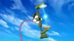 The Aipom Arm (Japanese: エイパムアーム Eipam Arm) is one of Clemont's regularly used inventions. It is an extension of his backpack and he uses it for various situations, such as opening locked doors, blocking attacks, and pulling away Bonnie when she embarrasses him. It is by far Clemont's most used invention and only malfunctioned once but was quickly repaired. | Lumiose City Pursuit! | ✔ Success |
