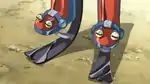 The Muscle Mass Magnifying Machine (Japanese: 筋肉強化マシン Muscle Boost Machine) consists of a pair of shoes with special springs attached to them. The springs multiply the power of one's jumping by using one's body weight. Because of the added load of the body weight, they strengthen the leg muscles rapidly. Clemont used it to help Ash and Froakie with their training. However, as he wanted to demonstrate its capabilities, the springs launched Clemont high into the air and out of sight. | A Rush of Ninja Wisdom! | ✘ Failure |
