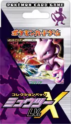 Another of the Collection Packs was the Mewtwo LV.X Collection Pack (Japanese: コレクションパック ミュウツーLV.X), which includes twelve reprinted promotional cards. Six of these are Holofoil, including an alternate art print of Mewtwo LV.X, plus the previously difficult to obtain Time-Space Distortion Trainer card.