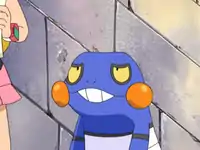 After the group got separated by Graveler and Golem using Rollout, Croagunk ended up going with Dawn while they were stuck in a maze looking for Ash and Brock. When the group found each other on two sides of a maze wall, Croagunk, along with the other Pokémon, were commanded to break a hole on one side of the wall. | ||