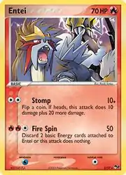 Entei (Japanese: エンテイ Entei) is a Fire-type Basic Pokémon card. It is part of POP Series 2.