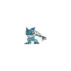 Frogadier is a nimble and swift Pokémon; it can scale a tower exceeding 2,000 feet (600 meters) in one minute. It can also throw bubble-coated pebbles at targets up to 100 feet (30 meters) away. It can confound opponents by leaping about ceilings or into trees[1]