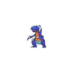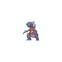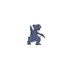 Gabite is a fierce and predatory Pokémon, known for its scales, which have medicinal properties and can heal most illnesses. Gabite has short, extremely sharp teeth, like its pre-evolved form Gible. It has been known to move at extreme speeds. The protrusion on Gabite's head allows it to emit ultrasound waves, which can be used for navigating through pitch-dark caves. Gabite is also a very territorial creature and will fight back against enemies to protect its home. Gabite is passionate about shiny objects, such as gems and even Carbink, and it hoards a collection of them in its nest. When it sees Sableye trying to take Carbink as food, Gabite jealously attacks the Sableye.