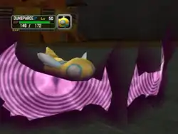 Dunsparce's eyes and eyelids glow red and the opponent becomes paralyzed. | ||