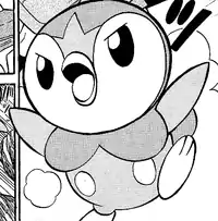| Katsuya has a Piplup nicknamed Chacha (Japanese: チャチャ Chacha). Chacha was first seen in a house. When a Steelix arrived, Chacha was sent out to carry a person who was on there off of Steelix and to safety. Later, it was sent out to battle a Gastrodon who was part of a group of Pokémon blocking the way from the four Trainers from going to Meragura Volcano.