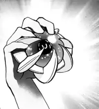 In A Raid and Po Town, after Sun completed his second trial at the Thrifty Megamart, he thanked the Rotom Pokédex for its help in the battle where it gave information about Tapu Bulu. To Sun and Lillie's surprise, Rotom revealed it learned about Tapu Bulu from Nebby. Hoping that Rotom could translate Nebby's speech and speed up his job to deliver Mirage Berries to each of Alola's guardian deities, Sun tried to get Nebby to come out. To their shock, Nebby emerged from Lillie's bag in the form of the motionless, cocoon-like Cosmoem.