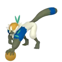 This Pokémon creates troops of 20 to 30 members. Each troop has a leader that picks 10 of the strongest members to search for food. Passimian tend to get into territorial disputes with Ambipom in their search for comfortable trees, in which they win half the time. This Pokémon's battle strategy involves throwing Berries at opponents, hard ones for damage and soft ones to obscure vision, and confusing opponents by throwing the Berry to other troop members. A troop's leader is the member that can throw these Berries the farthest. Through rigorous training, the troop improves its coordination, teamwork, and skill in handling Berries. Some Passimian are unable to handle the intensity and flee from the troop. In place of a troop leader, a captive Passimian looks to its Trainer for leadership. If its Trainer has poor form when throwing Poké Balls, it will refuse to obey.[1]
