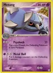 Metang (Japanese: メタング Metang) is a Psychic-type Stage 1 Pokémon card. It is part of the EX Hidden Legends expansion.