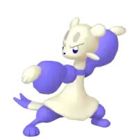 Mienfoo specializes in flowing, speedy, continuous attacks, becoming more precise as it concentrates. Though not very powerful, it can make this up with the number of hits it deals. It also has sharp claws it can use to cut foes. Packs of Mienfoo seclude themselves to mountains to focus on their training. Each pack differs in its kick and chop form. A well-trained Mienfoo is capable of 100 arm chops in just one minute. Mienfoo has a temperamental nature despite its small size. It attacks anyone that comes near it with a flurry of attacks.