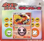 The second of the random half decks was the Charizard Random Constructed Starter Deck (Japanese: ランダム構築スターター リザードン★炎), which featured the Flame Pokémon Charizard and its evolutionary family as fixed cards. The remaining cards included in the deck comprise three random evolutionary families, a block of four that can be found in two of the random half decks, a block of three that can be in all three, a block of two Colorless-type families exclusive to the Charizard half deck, seven random Trainer cards, and eleven Energy cards. The half deck also comes with a rulebook, damage counters, status counters, and a coin.