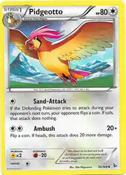 Pidgeotto (Japanese: ピジョン Pigeon) is a Colorless-type Stage 1 Pokémon card. It was first released as part of the Flashfire expansion.