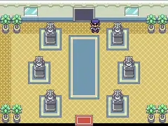 The Pokémon League Front Gate serves as the Boulder Badge checkpoint due to the Badge checkpoints being individually distributed by eight guards throughout Route 23. It also works as a connector between Routes 22 and 23. Unlike its Generation II and IV incarnations, it is not a four-way intersection.