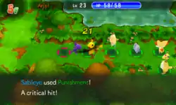 In Explorers of Time, Darkness and Sky, Punishment is a move with 1 base power, 88% accuracy, and 8 PP. The user attacks enemy in the front. This move's power increases by the number of stat boosts the target has, up to 10 boosts, ignoring any Defense boosts the target has when calculating the damage.