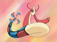 It later appeared in Deceit and Assist where it was used in the Appeals Round of the Hoenn Grand Festival. It was seen again during the final match of the Festival battling alongside Robert's Claydol against Drew's Flygon and Masquerain and winning. Milotic's known moves are Iron Tail, Safeguard, and Twister. | ||