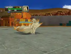 Vulpix turns around and waves its six tails back and forth in the air. | ||