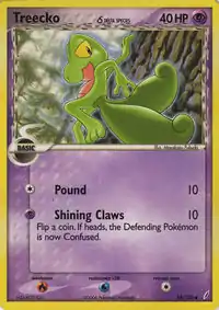 Treecko δ (Japanese: キモリδ Kimori δ) is a Psychic-type Basic Pokémon card. It was first released as part of the EX Crystal Guardians expansion.