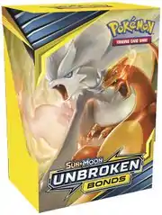 The Unbroken Bonds Build & Battle Box is a special product given to participants at the start of Prerelease Tournaments for the Unbroken Bonds expansion. These tournaments were held on the two weekends prior to the release of the expansion: April 20-21, and 27-28, 2019. The boxes were later made available to purchase at retail stores. Each box contains a random set of predetermined cards designed to enhance the experience of the Limited format events in which they were initially distributed.