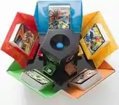 Three related deluxe products were also made available from the same day. One of these was the Toys "R" Us Limited Triple V Starter Set (Japanese: トイザらス限定 トリプルスターターセットV), which could only be purchased at participating Toys "R" Us stores. It includes 1 copy of the Grass, Fire, and Water V Starter Sets, plus an exclusive deck box featuring Grookey, Scorbunny, and Sobble. The second was an enhanced version of the V Starter Set Fire: the V Starter Set Fire 7-Eleven Limited Special Set (Japanese: セブン-イレブン限定スペシャルセット スターターセットV炎), which was only available from participating 7-Eleven stores. This version includes a limited design card box and set of sleeves. The third product was the V5 Starter Set Complete Battle Box (Japanese: スターターセットV5 コンプリートバトルボックス), which contains all five V Starter Sets, their respective deck coins, and an exclusive playmat.