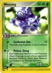 Weezing (Japanese: マタドガス Matadogas) is a Grass-type Stage 1 Pokémon card. It is part of the EX Ruby & Sapphire expansion.