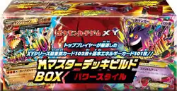 Based on the original Master Deck Build Box EX released during the BW Era, two new Master Deck Build Boxes were made available from August 7, 2015, this time focusing on Mega Pokémon released throughout the XY Era. One of these was the M Master Deck Build Box Power Style (Japanese: MマスターデッキビルドBOX パワースタイル), which includes a selection of popular Pokémon and supporting Trainer cards from previous XY Era expansions that focus on dealing damage. The box includes a total of 203 cards, a Mega Master Deck Build Book, and a long card box for storage.