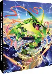 File: The Mega Rayquaza Card File (Japanese: カードファイル メガレックウザ) includes 16 four-pocket sheets and can display up to 128 cards. The file cover features the same Ryota Murayama illustration of Mega Rayquaza that adorns other products available at this time.