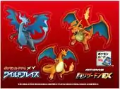 Deck case: The lone deck case released at this time was the Mega Charizard Deck Case (Japanese: デッキケース メガリザードン), which features the Flame Pokémon Charizard in both of its Mega Evolved states in a 5ban Graphics illustration. The deck case can store a maximum of 180 cards and comes with 2 card dividers—1 featuring Mega Charizard X and the other Mega Charizard Y.