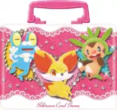 The XY Beginning Set DX for Girls (Japanese: はじめてセットDX forガール) was released alongside the XY Beginning Set DX on November 15, 2013. It is a deluxe version of the regular XY Beginning Set for Girls, including everything found in it, with additional correspondingly designed card sleeves, a deck box, and a sticker sheet. The deluxe set comes in a metal carrying case that features Chespin, Fennekin, and Froakie.