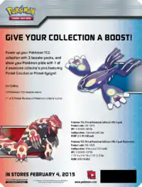In Australia, only the Primal Kyogre-EX and Primal Groudon-EX releases were available, both exclusive to EB Games. In the United States, the box containing Primal Kyogre-EX was available exclusively at Toys "R" Us, while the Primal Groudon-EX version was exclusive to GameStop. The M Rayquaza-EX version was distributed to any other store carrying the product.