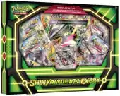 Following the Rayquaza-EX Box, the Shiny Rayquaza-EX Box released on August 19, 2015 featuring promotional and Jumbo cards. Unlike previous Boxes, the two cards are not the same: the regular card is the Shiny print of Rayquaza-EX, which was released in Japan during a mail-in campaign held around the release of Emerald Break, while the Jumbo card is one of the three Shiny Pokémon-EX from the Ancient Origins expansion, with the different cards exclusive to certain stores. It also includes 4 booster packs and a code card.