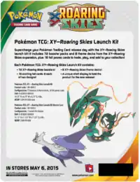 Much like many of the previous promotional boxes of the XY Series, the Rayquaza Box, released June 25, 2015, introduced an exclusive promotional Jumbo card featuring the Sky High Pokémon Rayquaza. Containing three booster packs (one from Roaring Skies, Primal Clash, and Phantom Forces each), the Rayquaza Box pairs with the Mega Rayquaza Collection, containing the same exclusive Rayquaza promo, but as both a regular card and a jumbo, and a code card for the TCGO. It was only available in Europe as a substitute for the North American figure promotional box.