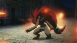 Zoroark is also shown to have a strong sense of vengeance, as towards the end of the film, she went out of her way to defeat Goone, Kodai's right-hand man, on her way to confronting Kodai and ultimately using her illusion powers to defeat Kodai herself. She is extremely strong, able to fight Raikou, Entei, and Suicune all at once to a draw. Her strength is greatly admired by her child Zorua, who looks up to her and wishes to be just as strong as she is one day.