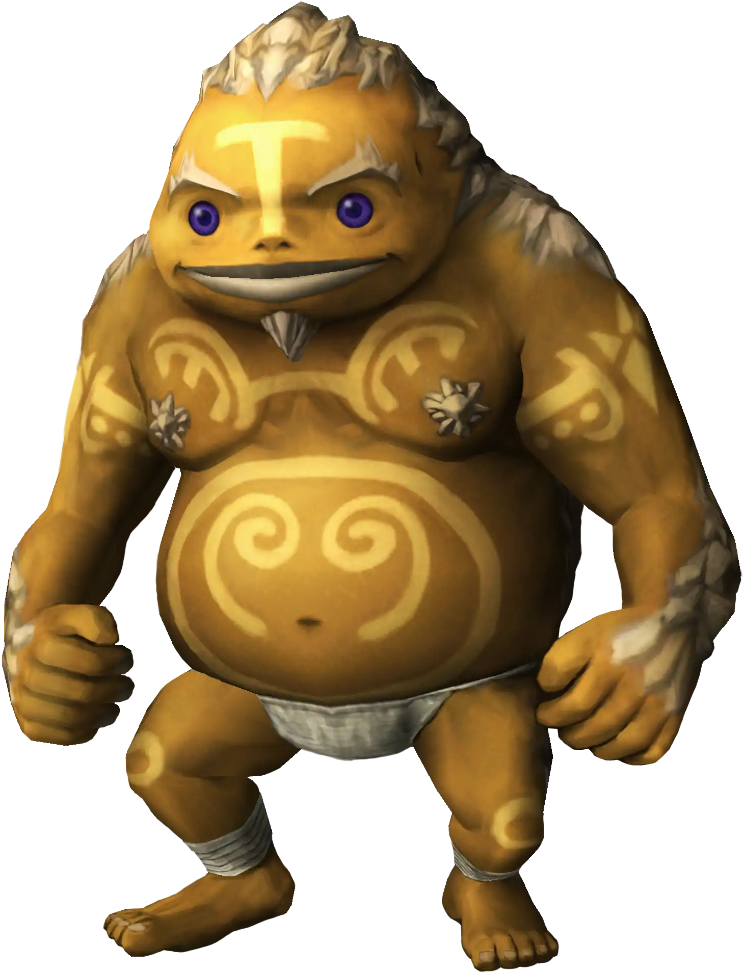 | A typical goron wears minimal clothing, has a protruding pot belly, and speaks with a deep but friendly voice. Source |
