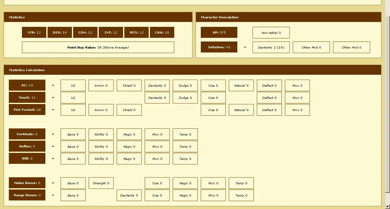 - Full character sheet with tabbing - statistics.