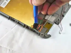 After removing the battery and motherboard, you must disassemble the bottom end of the tablet in order to gain access and disconnect the screen.