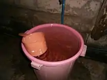 In the Indonesian language, mandi is the verb for this process; bak mandi is the large container, and kamar mandi is the place in which this is done.[42][43] Travel guides[44][45][46] often use the word mandi on its own or in various ways such as for the large container and for the process of bathing.