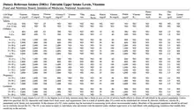 - ↑ Dietary Reference Intakes for Calcium, Phosphorus, Magnesium, Vitamin D, and Fluoride (1997); Dietary Reference Intakes for Thiamin, Riboflavin, Niacin, Vitamin B6, Folate, Vitamin B12, Pantothenic Acid, Biotin, and Choline (1998); Dietary Reference Intakes for Vitamin C, Vitamine E, Selenium, and Carotenoids (2000); Dietary Reference Intakes for Vitamin A, Vitamin K, Arsenic, Boron, Chromium, Copper, Iodine, Iron, Manganese, Molybdenum, Nickel, Silicon, Vanadium, and Zinc (2001); and Dietary Reference Intakes for Calcium and Vitamin D (2011).