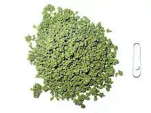 The green powder form is used most frequently. It is made by pouring water into a cement-lined cavity, to which slaked lime (calcium hydroxide) and air-cured, sun-dried, powdered tobacco is added. Indigo is added to the mixture to impart color,[3] and juniper ash may be added as flavoring.