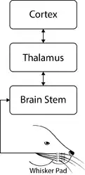 ![]() Figure 2. Schematic demonstrating the ascending pathway of rodent whisker-related sensorimotor system.