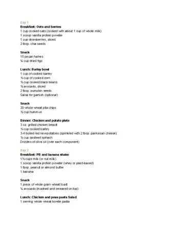 - Try to get a balance of protein, starch, vegetables and fat with each meal.
