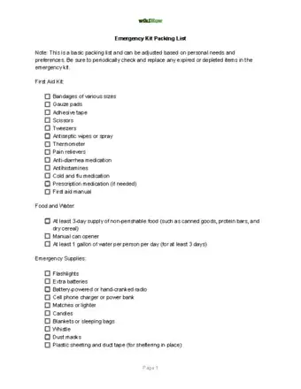 15Consider other things you might need--especially things such as medication, bandages, firearms, or other things according to age, location, or health.