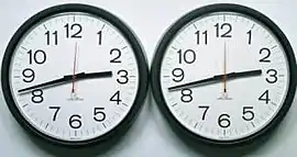 "Untitled" (Perfect Lovers) is a work of conceptual art produced by Félix González-Torres in an edition of three, plus one artist's proof, between 1987 and 1990.[1][2][3] It consists of two identical synchronized clocks, that will eventually fall out of sync. An ambiguous work of art, many have interpreted it to be a commentary on González-Torres' partner's struggle with acquired immune deficiency syndrome (AIDS) and death at large.