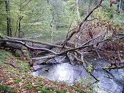 The Łyna is a tributary of the Pregolya River, and has a total length of 264 km (207 km in Poland and 57 km in Russia) and a basin area of 7,126 km² (5,298 km² in Poland).[1] It is connected to Lake Mamry by the 18th-century Masurian Canal.