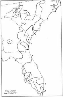- "18,000 Homes Hit in 22-County Part Of State Raked By Storm". The Palm Beach Post. Associated Press. August 30, 1949. p. 1. Retrieved April 2, 2018.