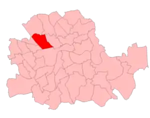 ![]() A map of parliamentary constituencies within the County of London at the time of the by-election, with St Marylebone highlighted in red. | |||||||||||||||||||||||||