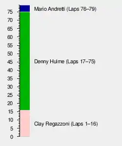 | 10 | 7 | March-Ford | 77 | + 2 Laps | 13 | ||
